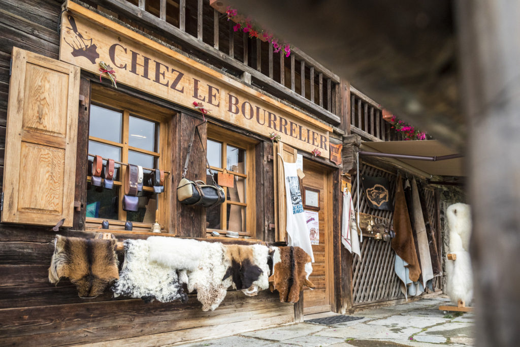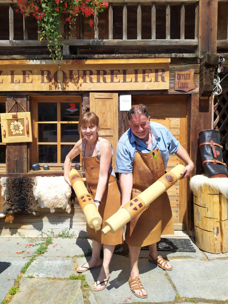 Chez le Bourrelier au Grand-Bornand est bien plus qu'une simple boutique, c'est également un atelier où l'on peut voir Didier Perrillat, Maître Artisan Bourrelier, travailler pour préparer ses commandes.