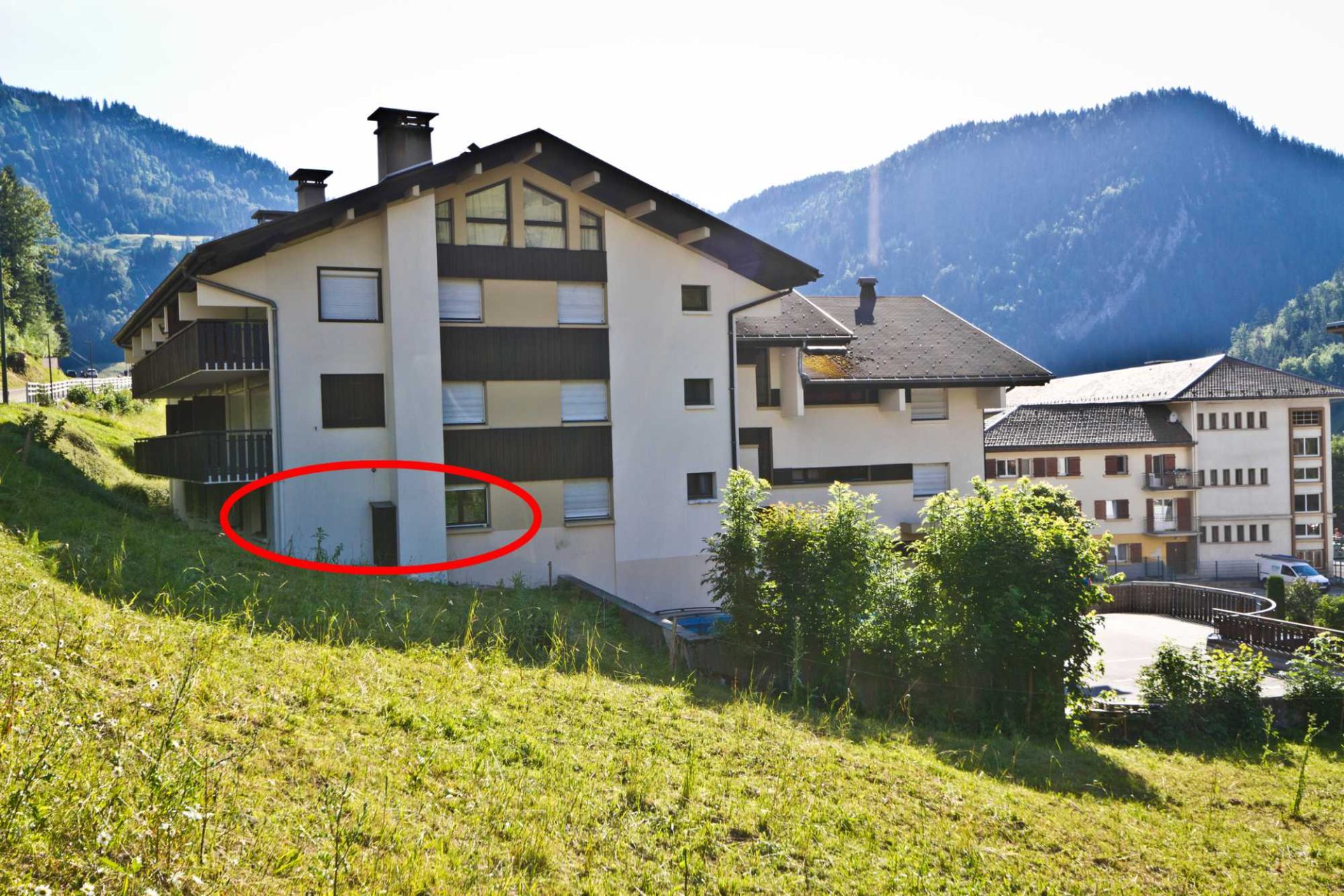 Le studio Belmont, d’une surface de 25 m², est situé au premier étage d’un immeuble résidentiel en plein cœur de La Clusaz.