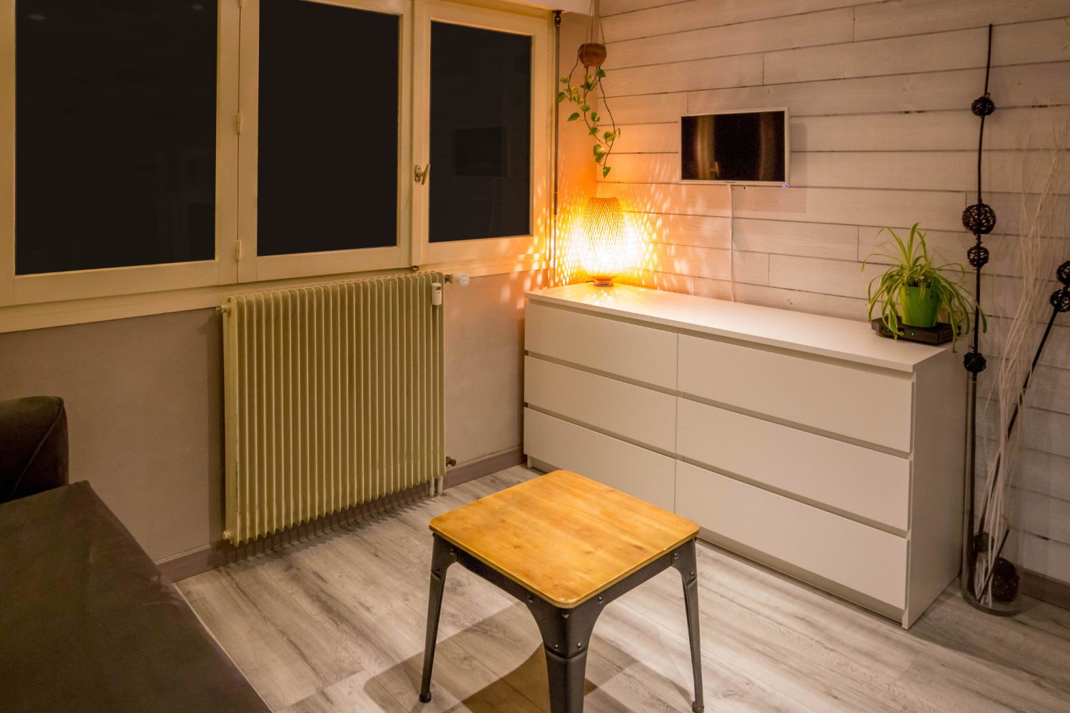 Le couchage est assuré par un canapé convertible qui se transforme en lit de 140×190.
